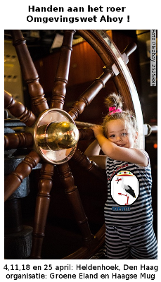 Bewonersorganisatie De Groene Eland en de Haagse Mug nodigen u uit voor het bijwonen van vier avonden over de nieuwe omgevingswet. De omgevingswet bepaalt per 2021 de fysieke leefomgeving van uw/jouw buurt en stad. Hoe staat het uw/jouw zeggenschap?