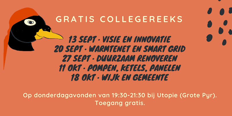 In het najaar van 2018 zal de Haagse Hogeschool een zgn. ‘minor’ opleiding doen met de verduurzaming van het Zeeheldenkwartier als onderwerp. GastColleges zullen onder de noemer ‘Zeehelden Verwarmen Gasvrij’ worden gegeven in Vrijplaats Utopie (Waldeck Pyrmont kade). De colleges zijn gratis te bezoeken voor bewoners van het Zeeheldenkwartier en iedereen die geïnteresseerd is. Het schema vindt je hier.