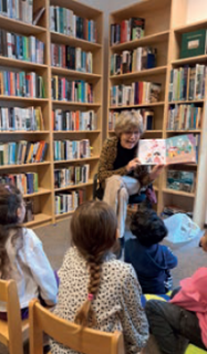 Maandag 6 november mocht groep 3 van de basisschool Max Velthuijs op visite bij de bibliotheek. De kinderen werden door Pieta en Carola getrakteerd op een paar prachtige verhalen. Ademloos luisterden de kleine toehoorders naar de twee vrijwilligsters, die bevlogen de verhalen aan de leerlingen voorlazen. Iedere maand mag een groep van de Max Velthuijs komen luisteren naar de fantasierijke verhalen.